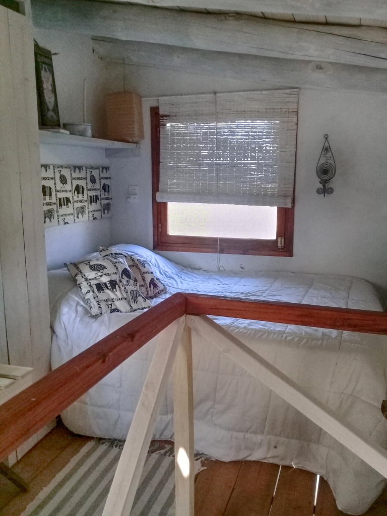 Ideal para una pareja, con posibilidad de sumar algún huésped más, ofrece un cuarto con cama matrimonial en entrepiso, y dos camas en planta baja. Una cocina equipada con heladera, microondas y todo lo indispensable; un estar-comedor, y bañito completo.