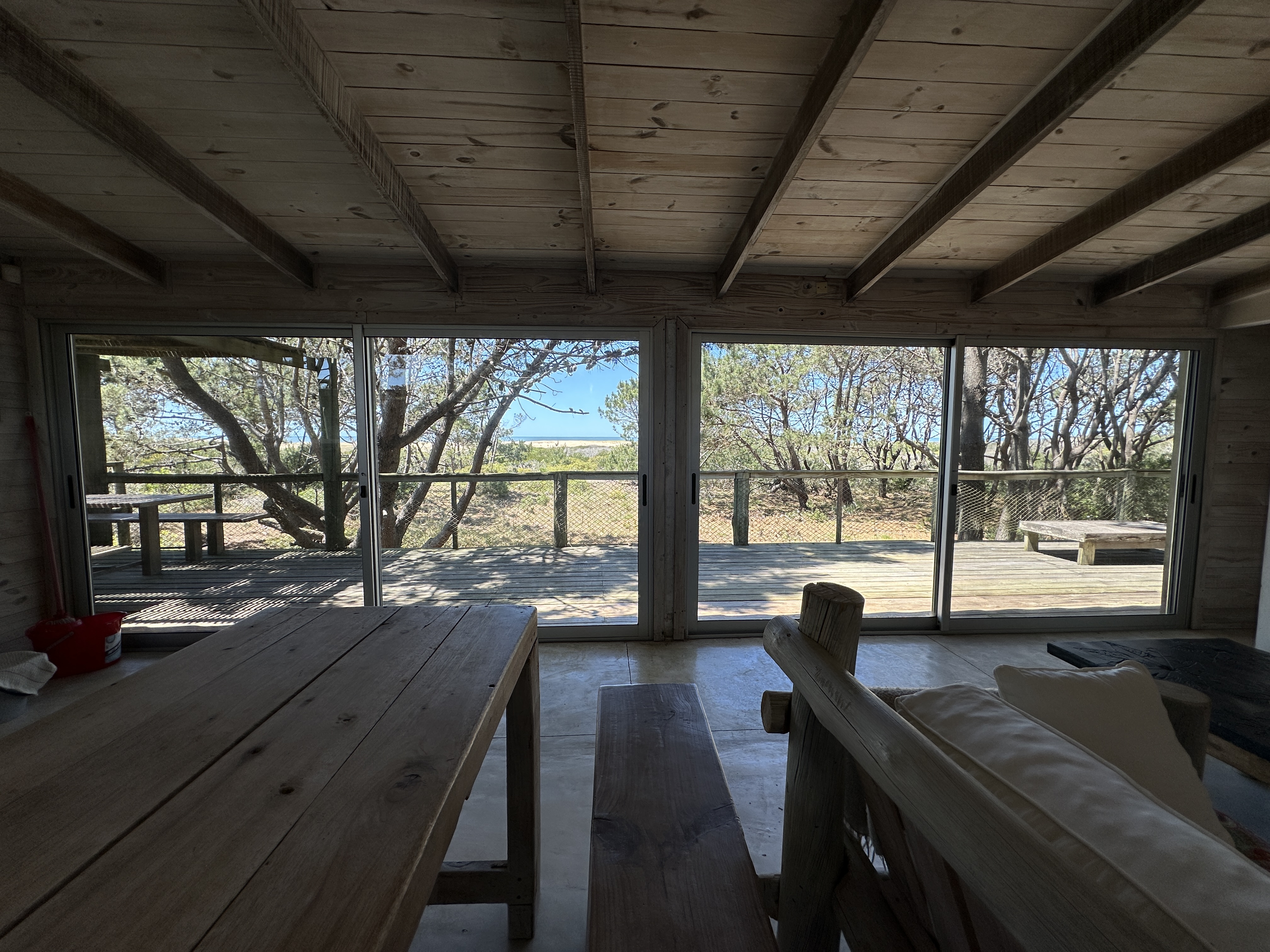 A la playa se llega en cinco minutos caminando desde el jardín. No hay nada adelante, solo dunas y vegetación. Generalmente entre la casa y la playa se forma una lagunita, ideal para los más chiquitos.