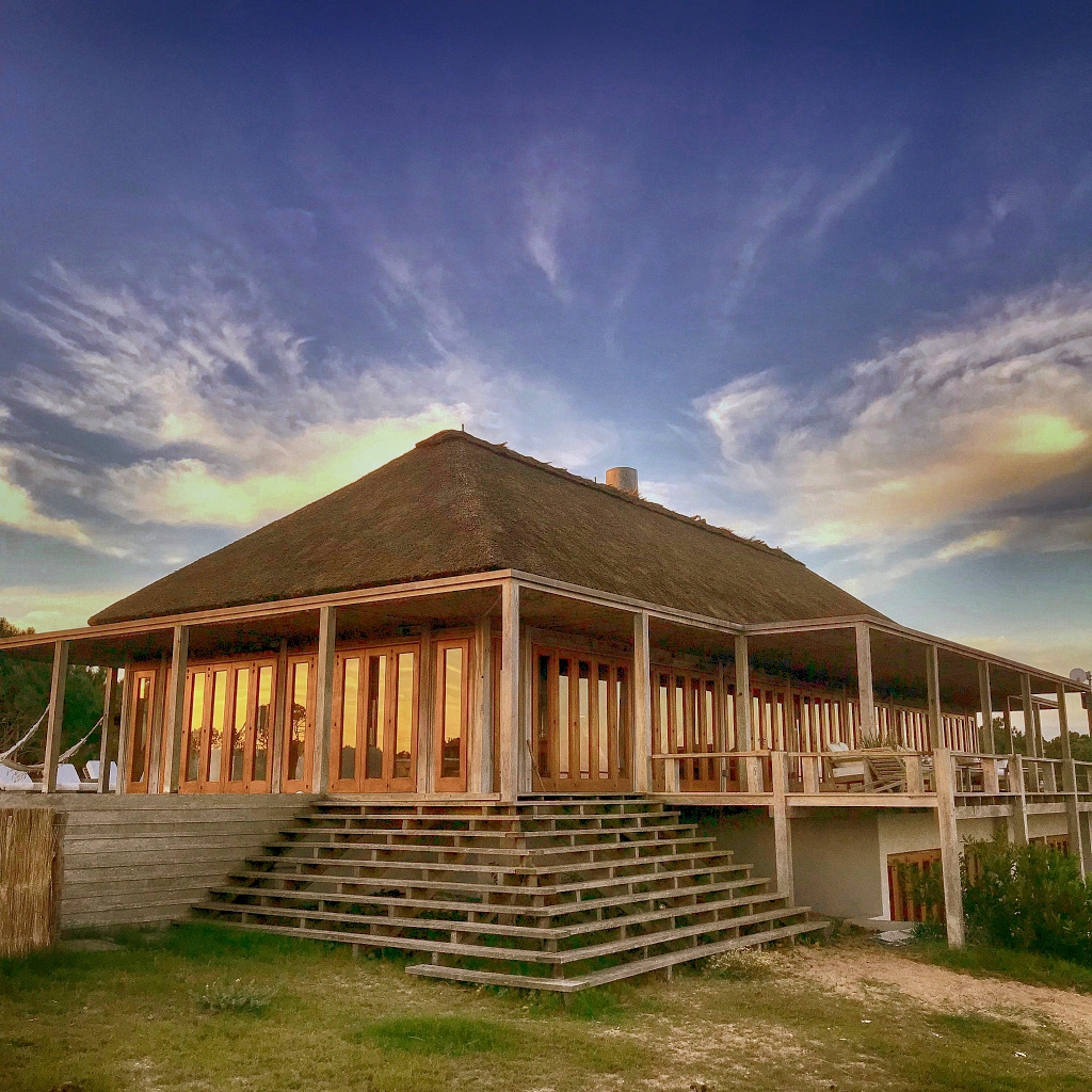 Con vistas a la barra y el mar desde todos sus ambientes, esta imponente casa está construida casi íntegramente con lapacho y aberturas de caoba, y techo de quincho estilo balinés, ofreciendo desde lo alto de la playa las más espectaculares vistas.