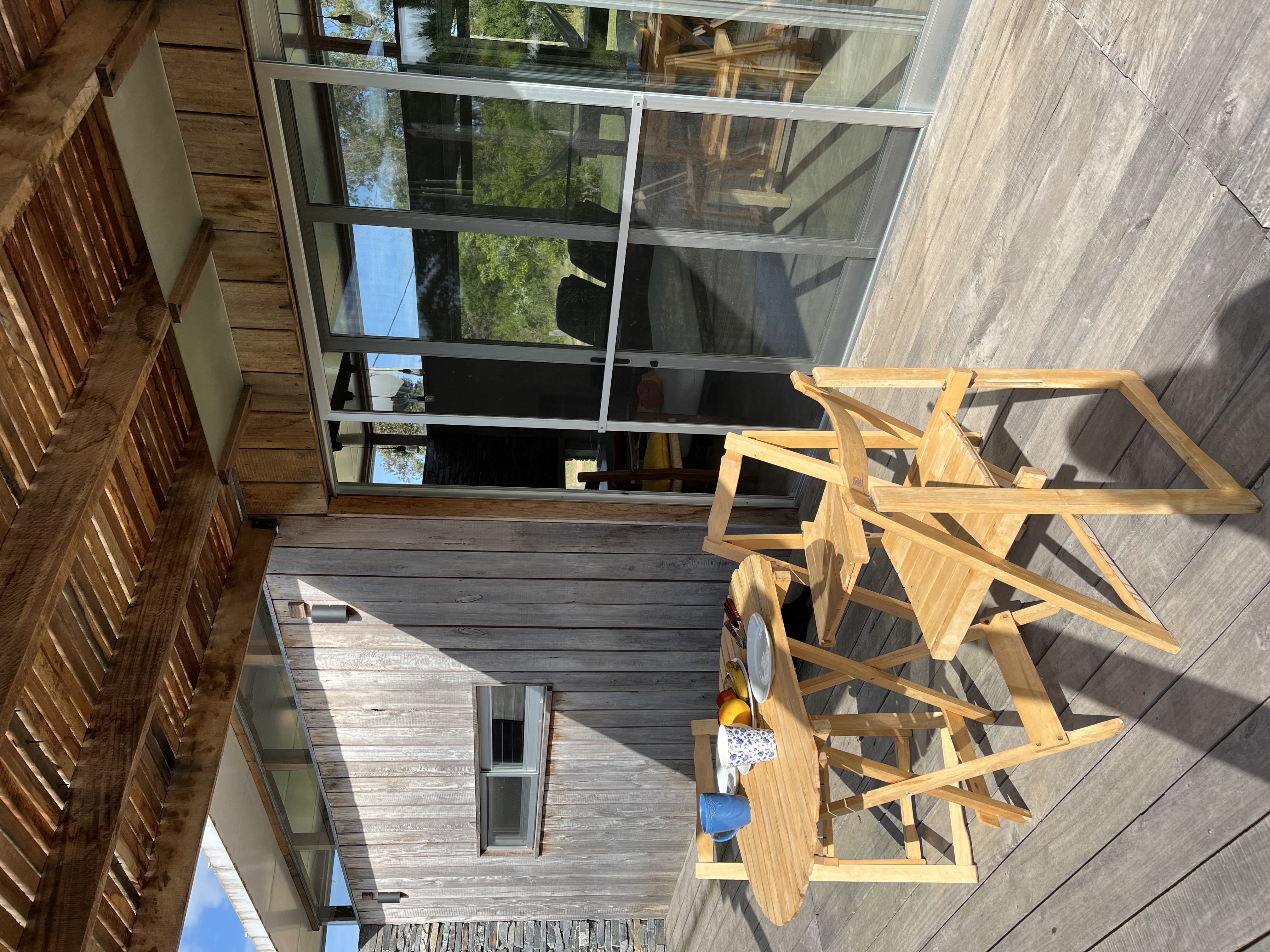 Los decks y aleros conectan y rodean ambos sectores de la casa, y son el espacio ideal para tejer momentos compartidos, alrededor de los fuegos del parrillero y su amplia mesa.