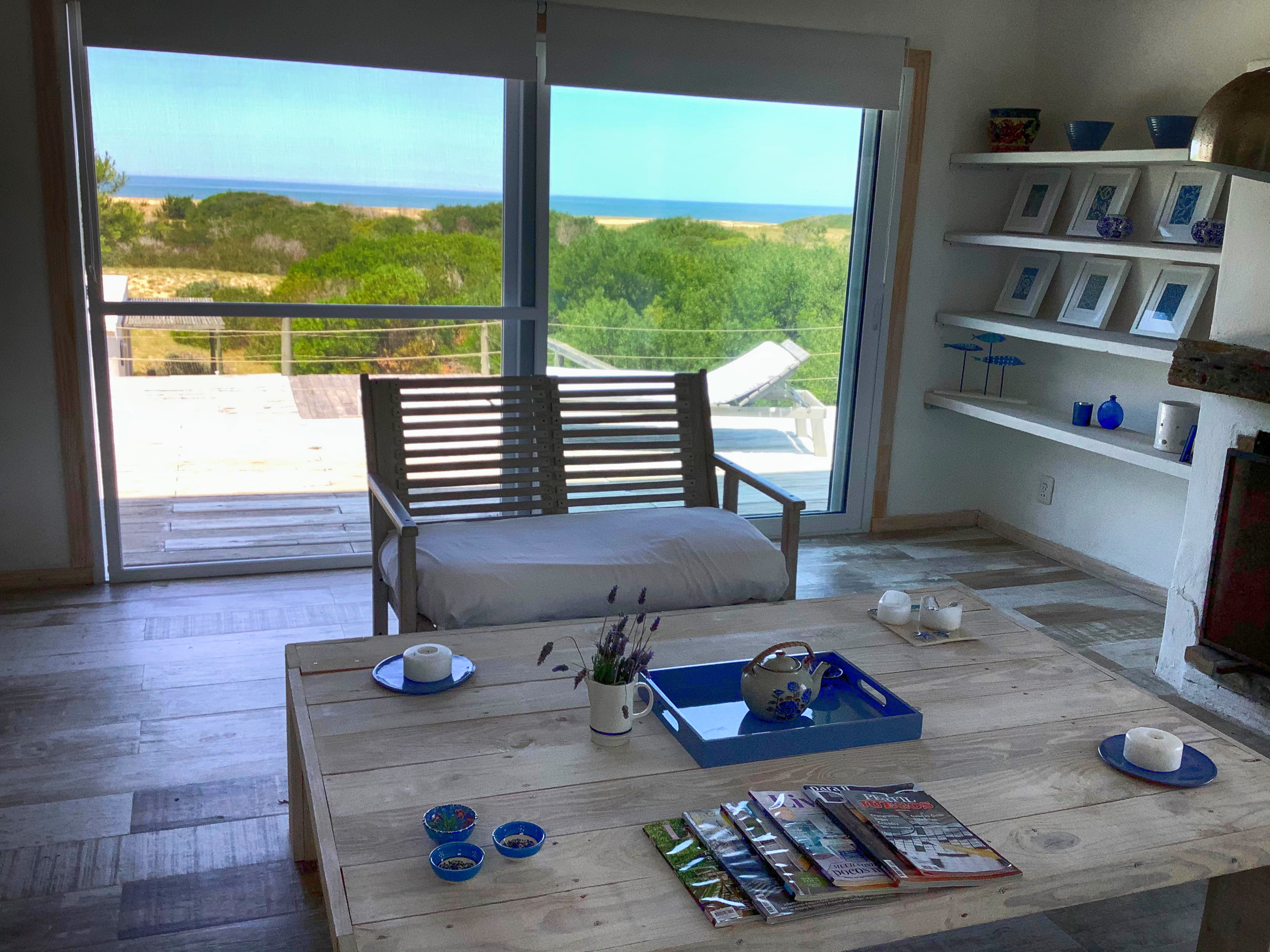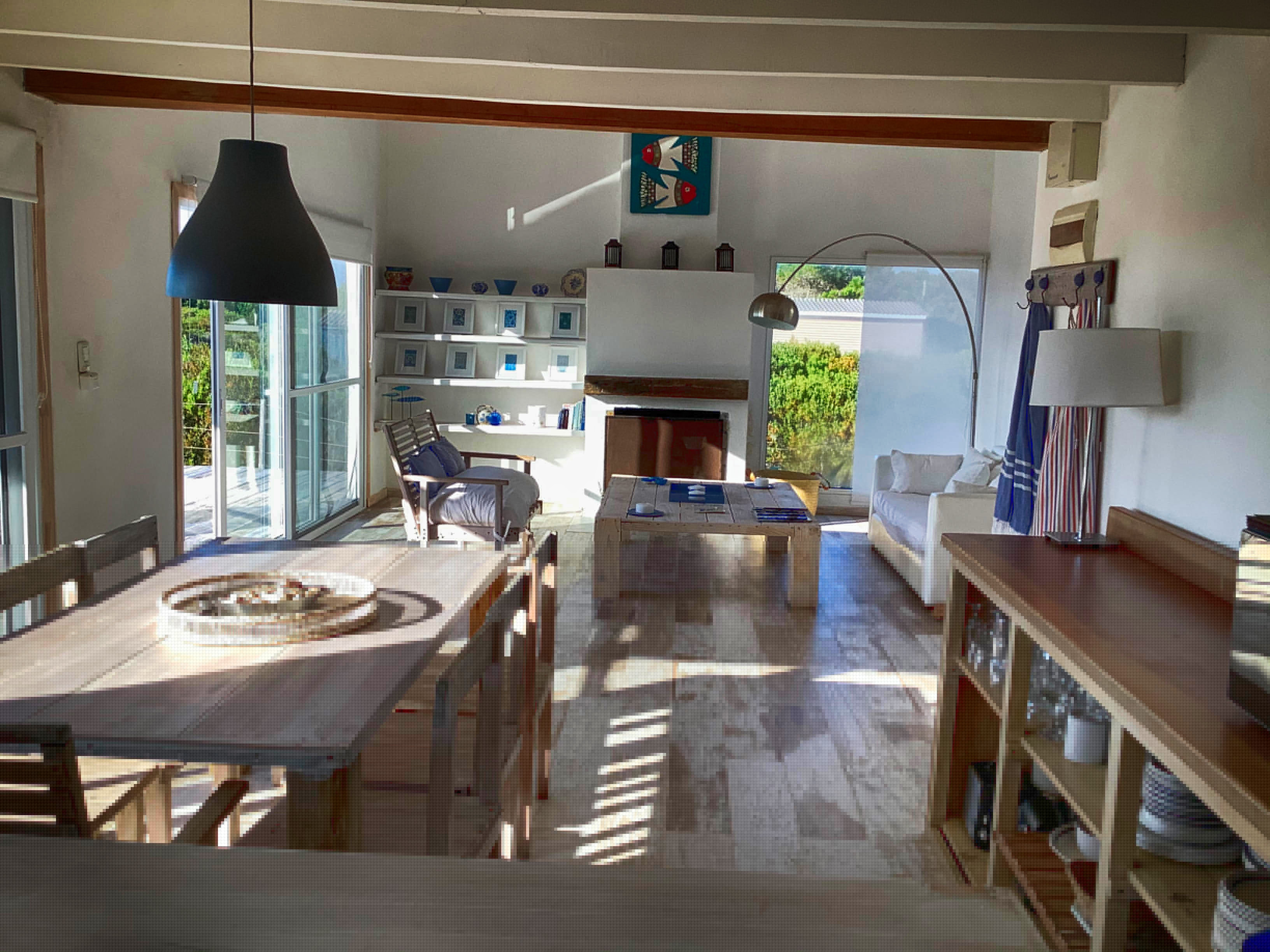La cocina y el living están integrados y rodeados de ventanales con vista al mar. un hogar a leña se erige como centro de reunión. Casablanca tiene una piscina rodeada de un deck, con reposeras y camastros ideal para pasar tiempo de día y de noche.