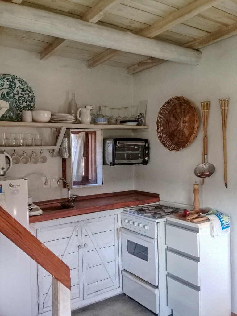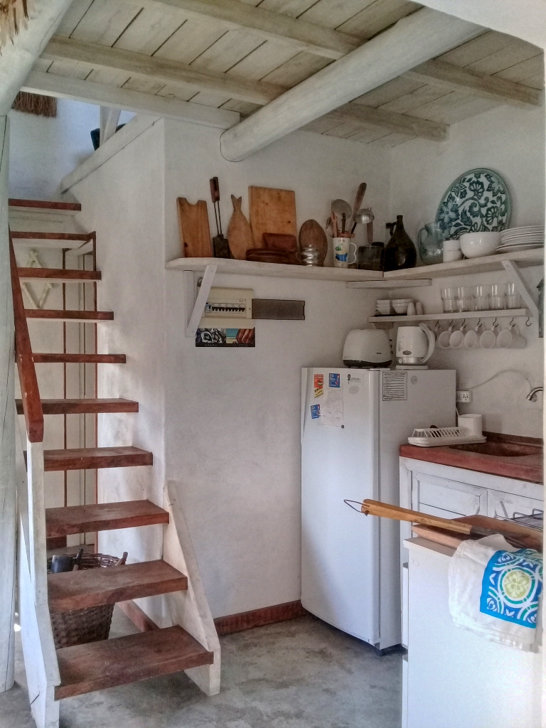Ideal para una pareja, con posibilidad de sumar algún huésped más, ofrece un cuarto con cama matrimonial en entrepiso, y dos camas en planta baja. Una cocina equipada con heladera, microondas y todo lo indispensable; un estar-comedor, y bañito completo.