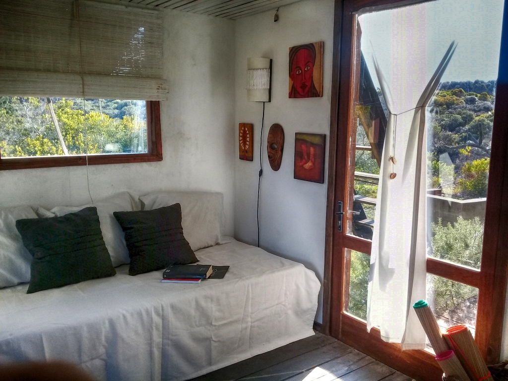 La casa está rodeada de la diversidad: en el encuentro entre el bosque y el monte autóctono, con excelente acceso y vista al Océano desde el deck del frente, y un mirador ubicado sobre el mismo y una ventana de la que se puede apreciar unos atardeceres "de aquellos".