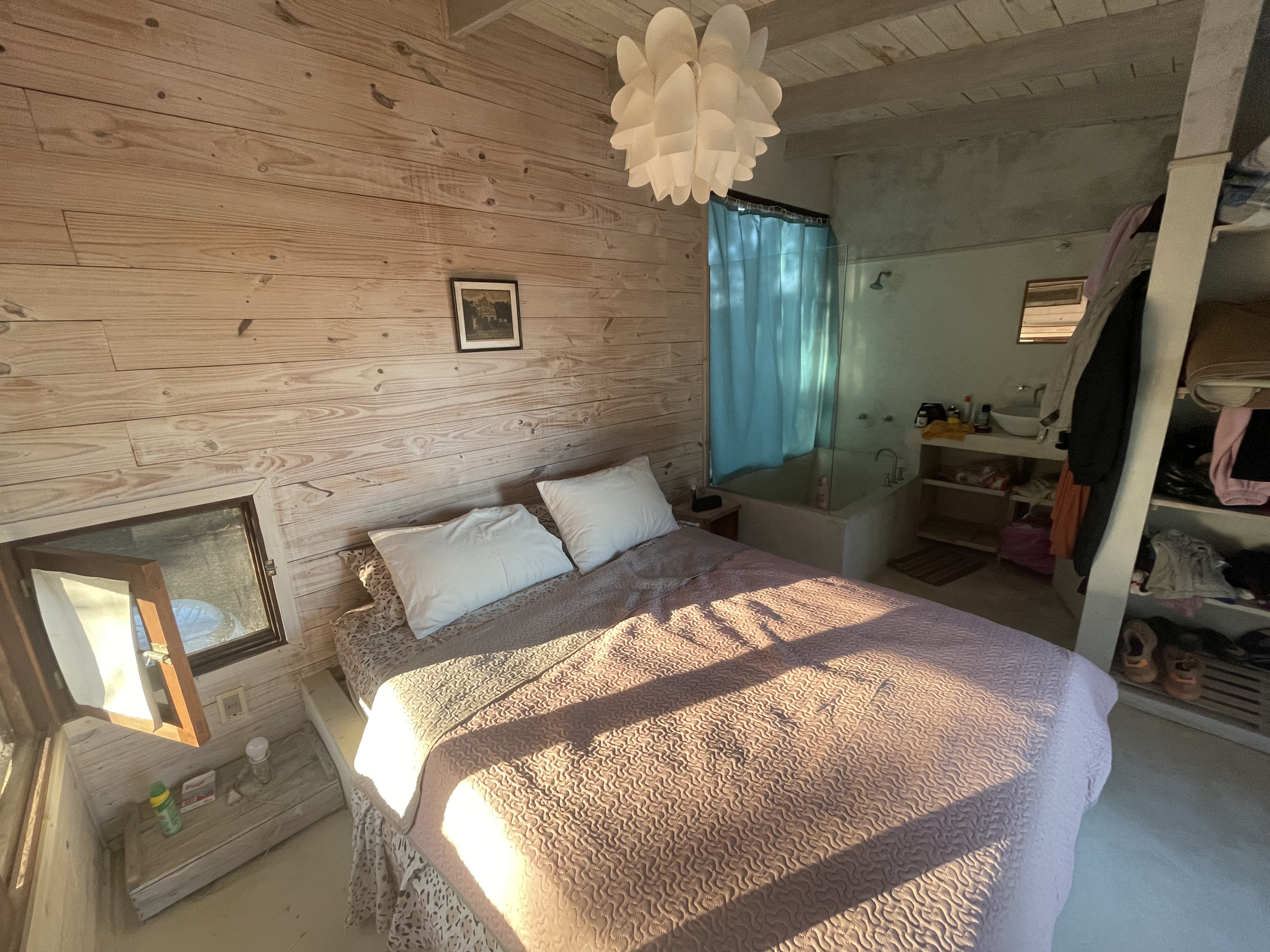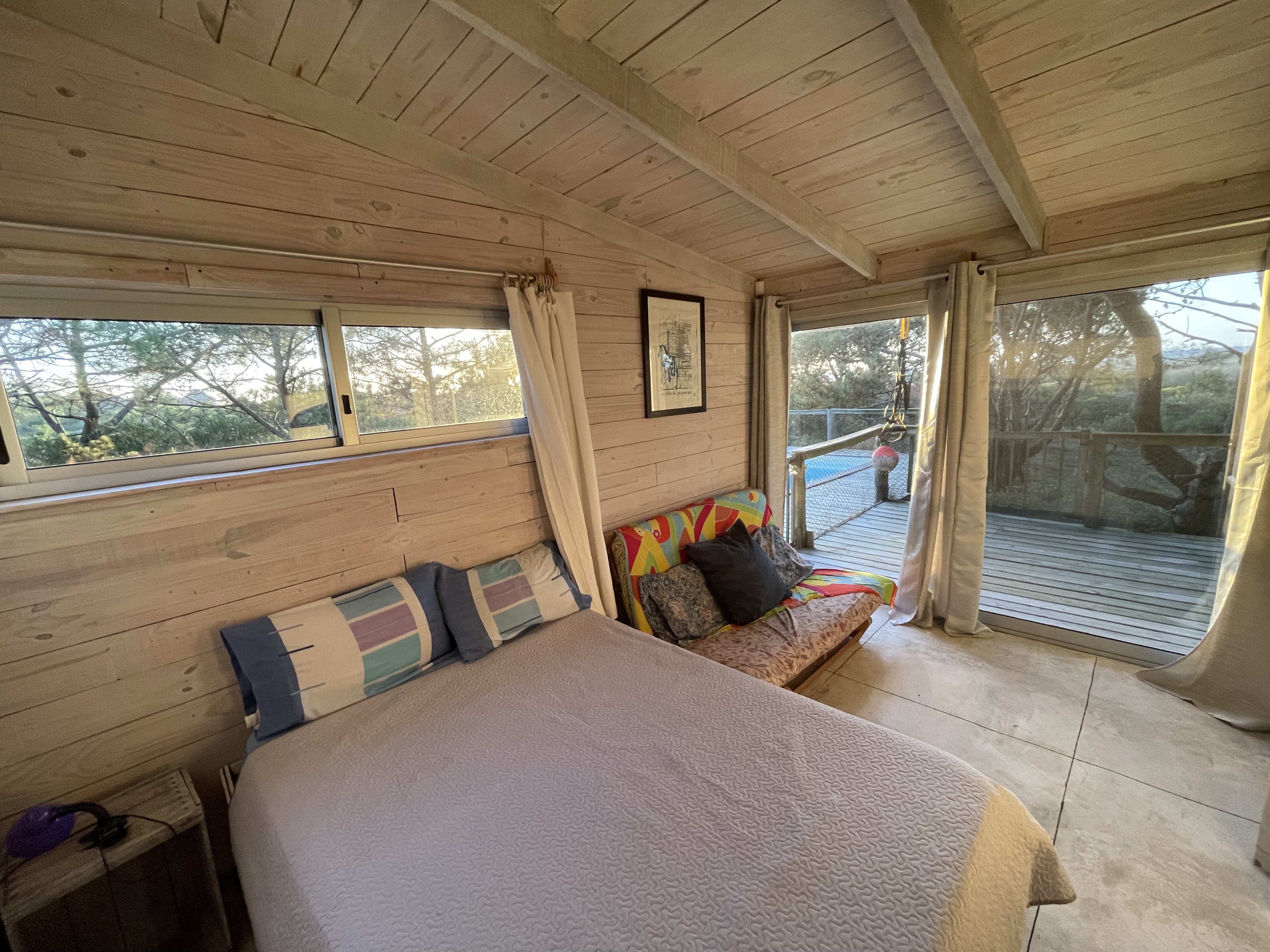 Ideal 6 personas que gustan de la independencia ya que la casa se organiza en dos alas. La zona principal cuenta con cuarto equipado con dos camas de una plaza, futón doble y baño, más otro cuarto doble con baño en suite. La zona de la torre dispone de 1 cuarto con cama doble y baño en suite. La pileta está en el medio de las dos zonas unidas por un gran deck y es un excelente complemento de la playa para los días de mar bravo, viento intenso o mucho calor. La terraza es un ambiente amplio y cuenta con mesa, sillas y un sector cubierto por si llueve o por si hay mucho sol.