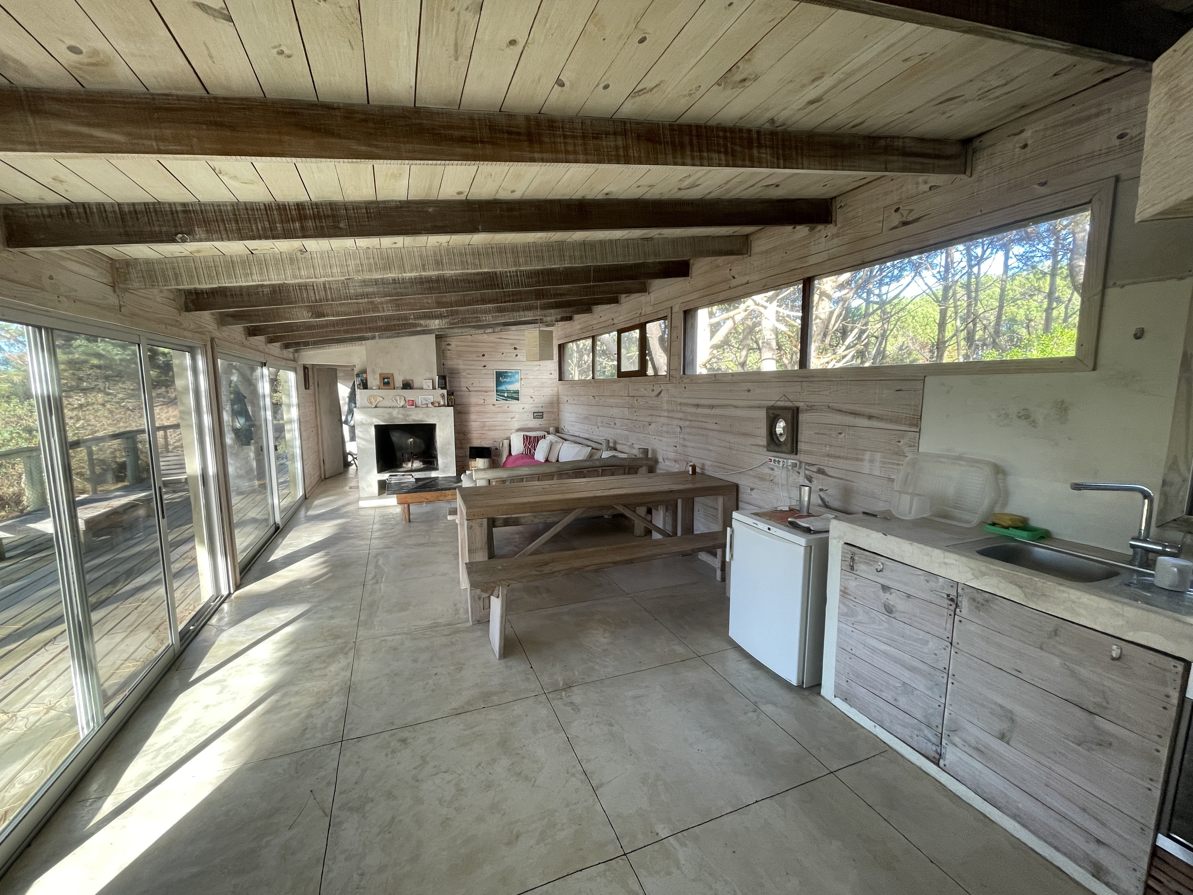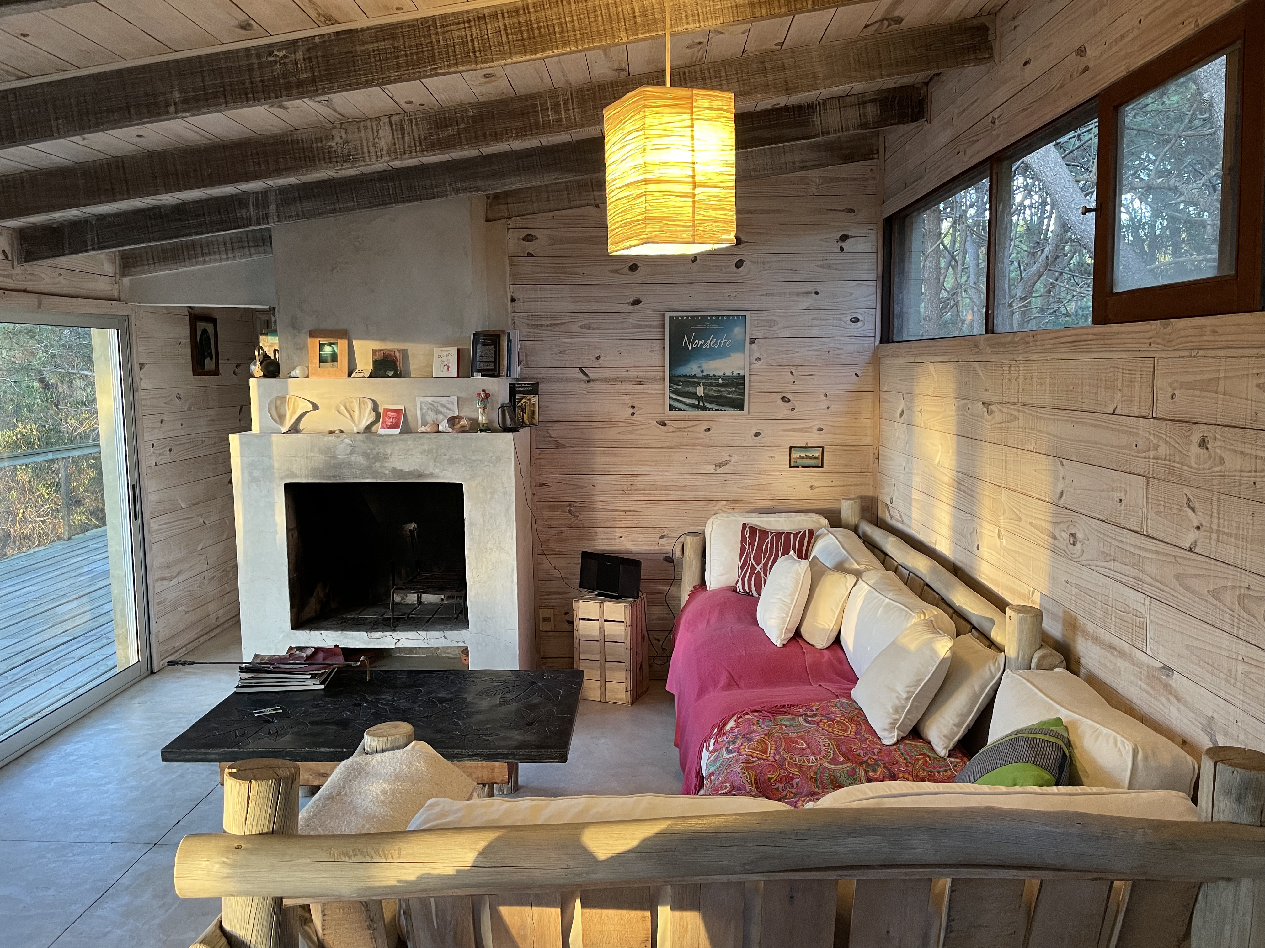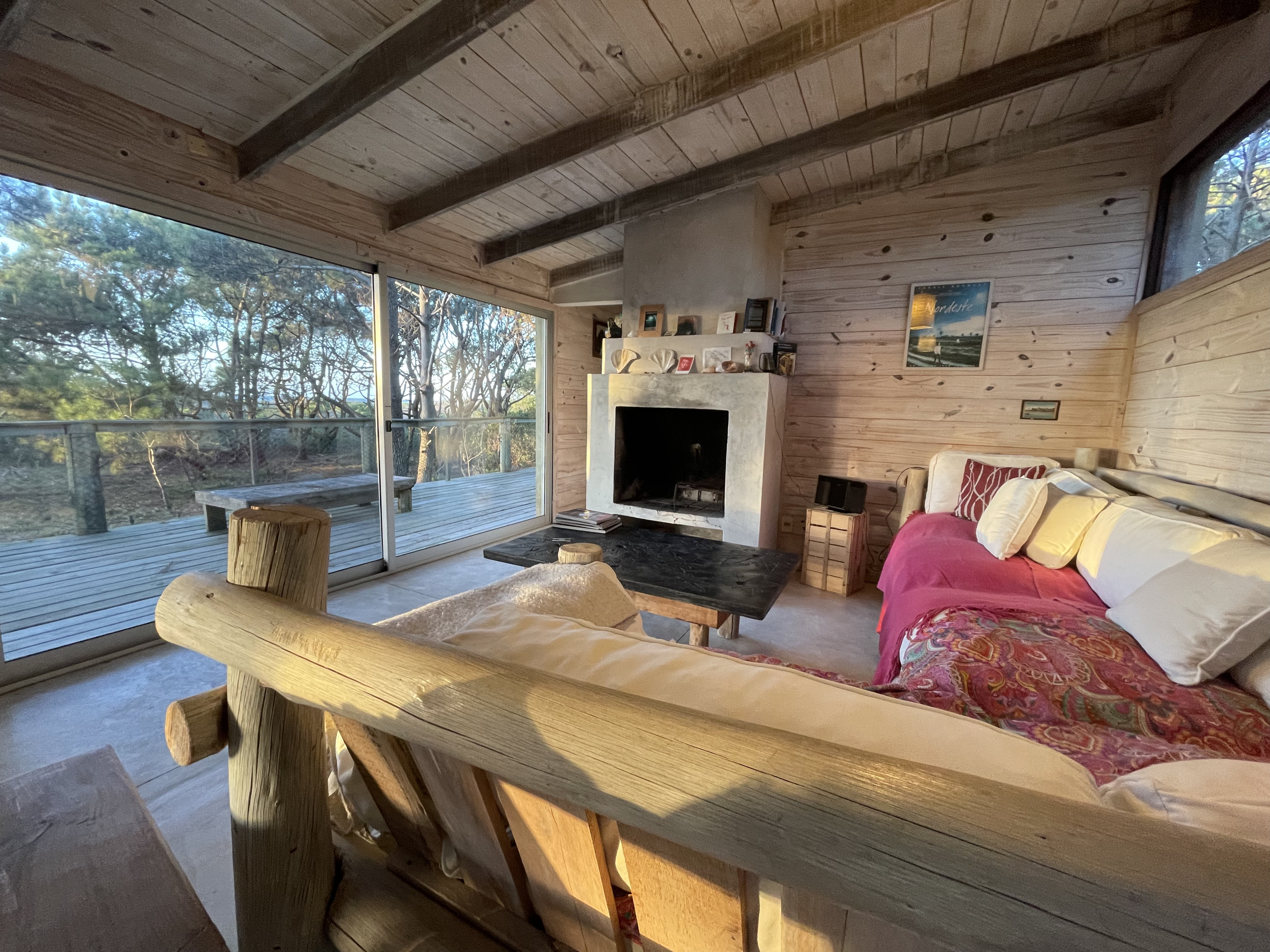 Amplia y con gran diseño, De Película tiene 3 cuartos y 3 baños, dos de ellos en suite, repartidos en dos módulos independientes unidos por el Deck. Su living comedor tiene una gran chimenea, cocina integrada y amplios sillones.
