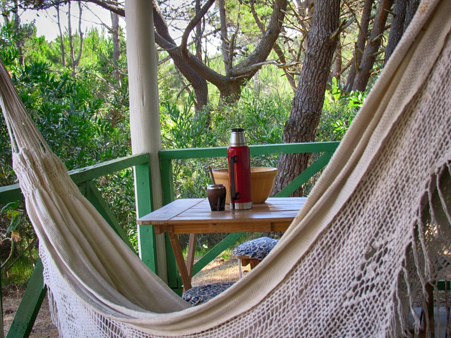 Abrazada por un bosque de pinos que repara del sol del verano, y a pasos del mar, El Refugio ofrece dos dormitorios, uno con una cama de dos plazas y otro con cucheta y cama individual.