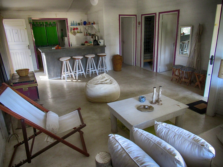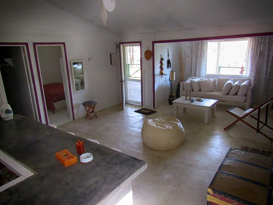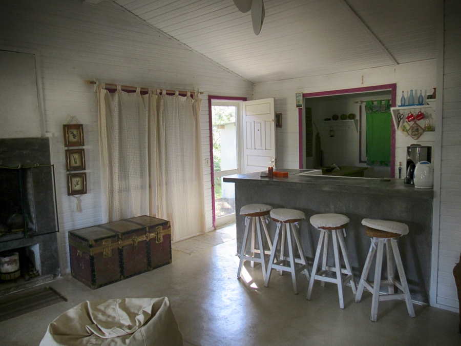 A sólo 200 metros y con bajada franca a la playa, una cabaña cómoda y luminosa, construida con madera y piso de cemento, muy luminosa. Cuenta con dos dormitorios y un amplio salón de estar con estufa a leña.