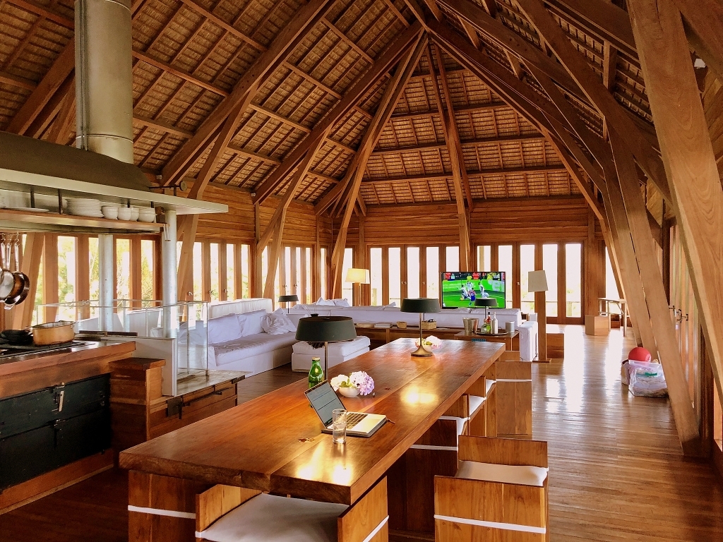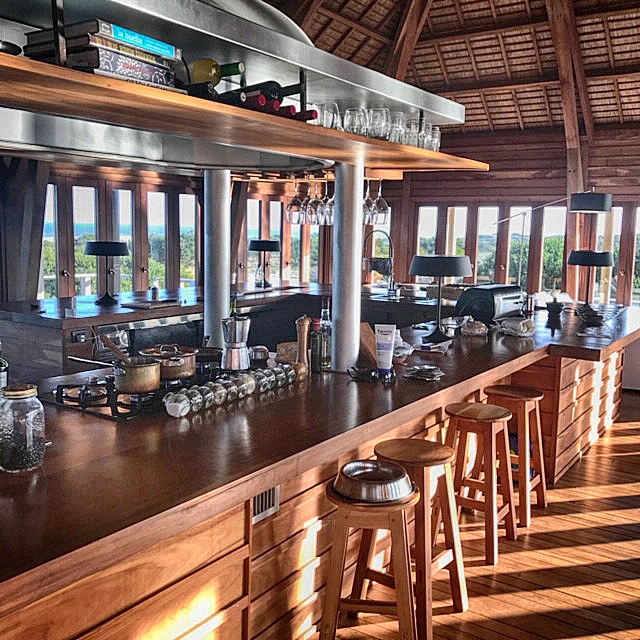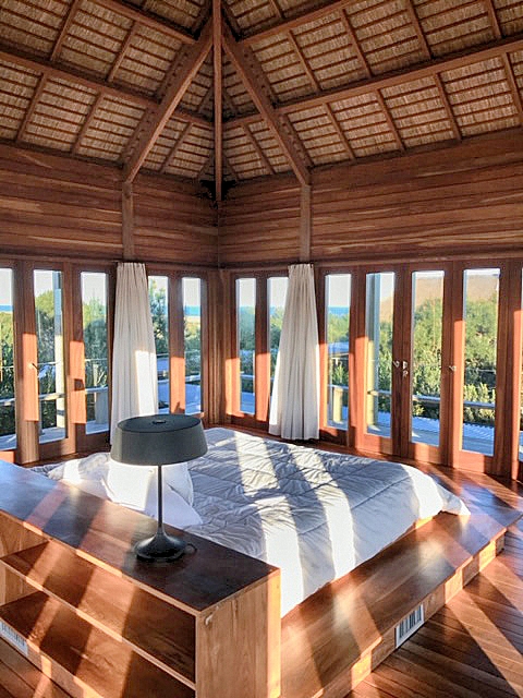 Con vistas a la barra y el mar desde todos sus ambientes, esta imponente casa está construida casi íntegramente con lapacho y aberturas de caoba, y techo de quincho estilo balinés, ofreciendo desde lo alto de la playa las más espectaculares vistas.
