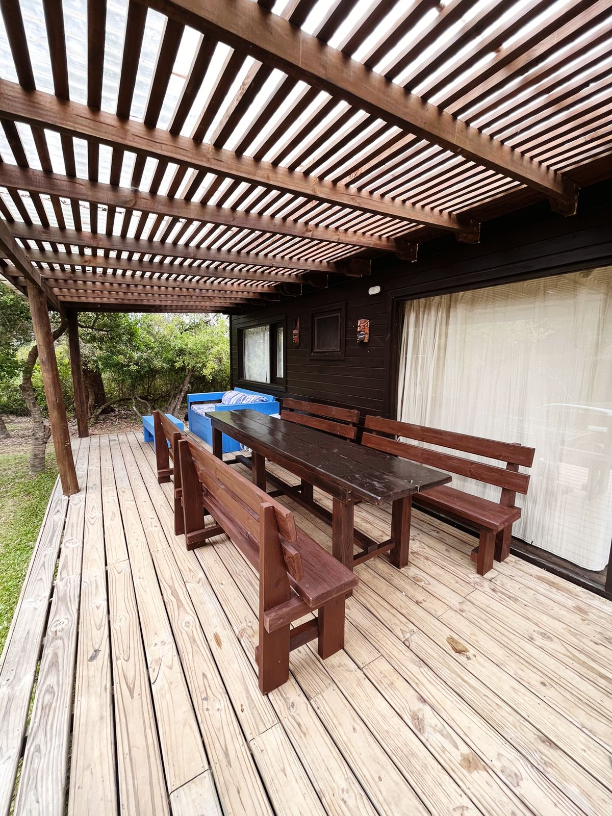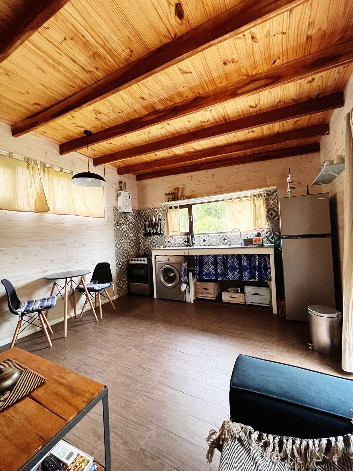 Totalmente equipada, tiene todo lo necesario para una pareja. Un amplio y cómodo espacio exterior con deck y mesa para la reunión y el disfrute de la fusión de parque y huerta.