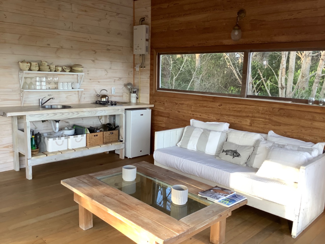 Totalmente equipada, con un cuarto amplio, un baño completo y una cocina y living con cómodos sillones, la cabaña se completa con decks a su alrededor, para disfrutar del aire de mar y el sonido de la naturaleza en estado puro.