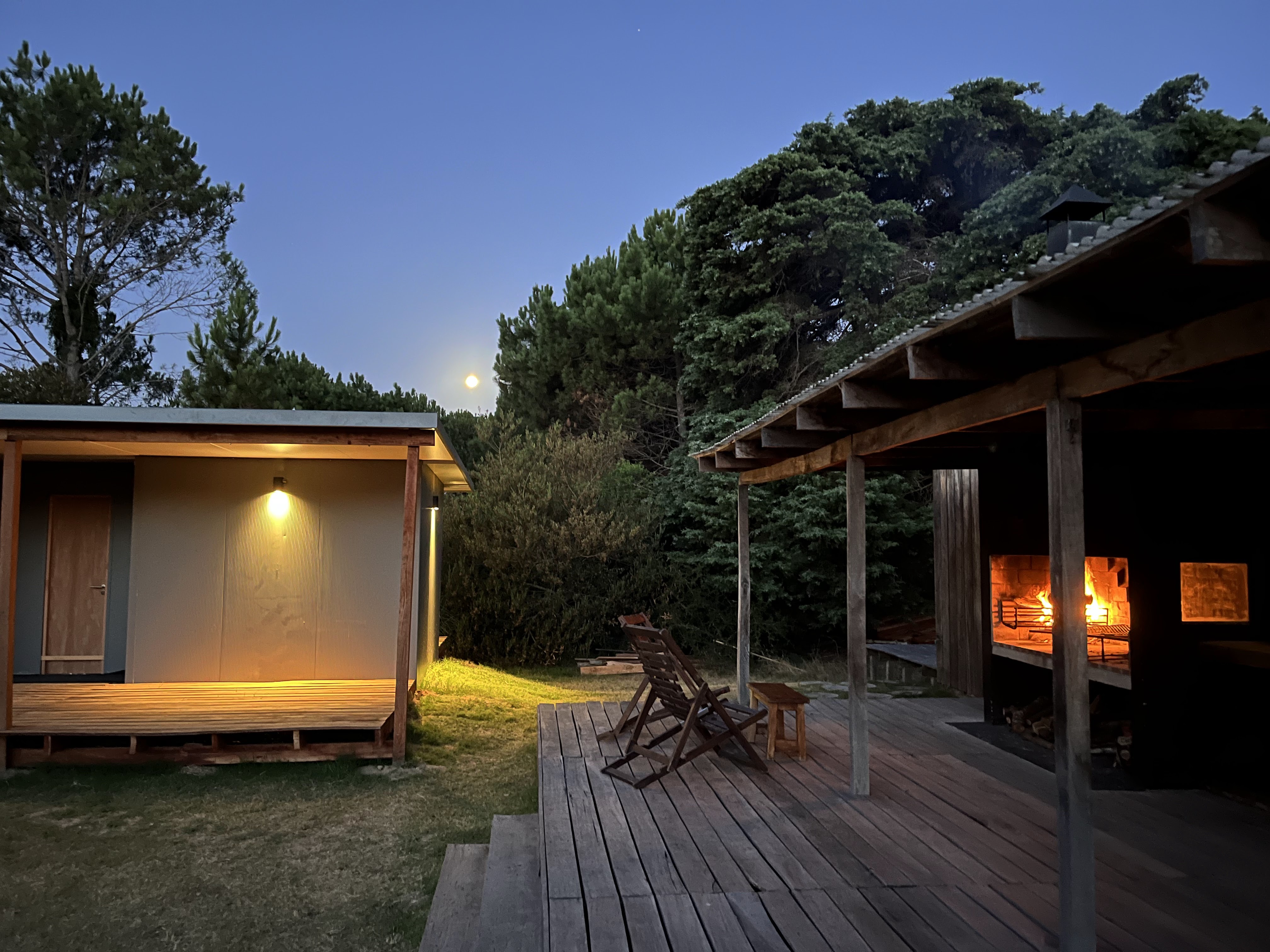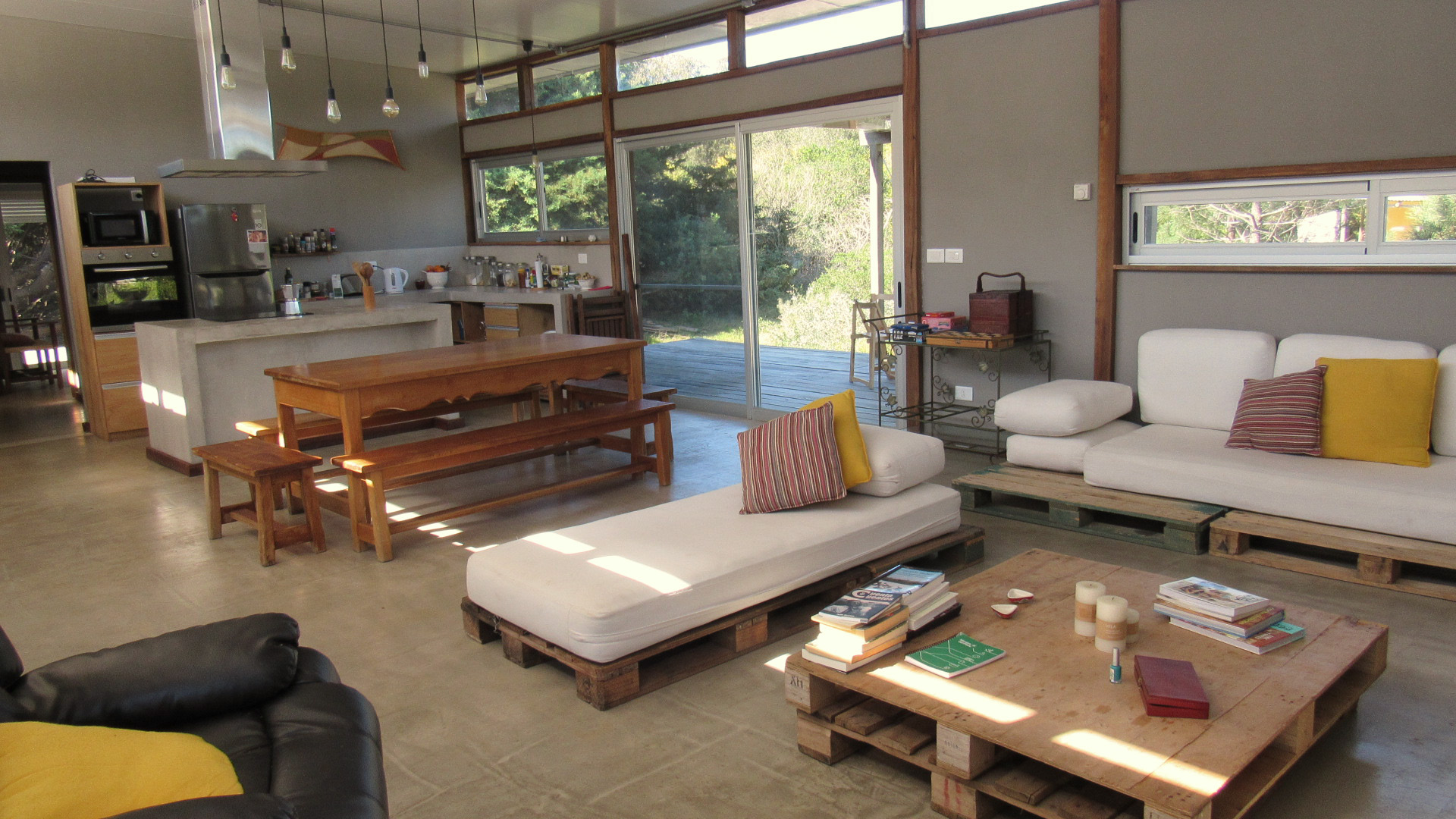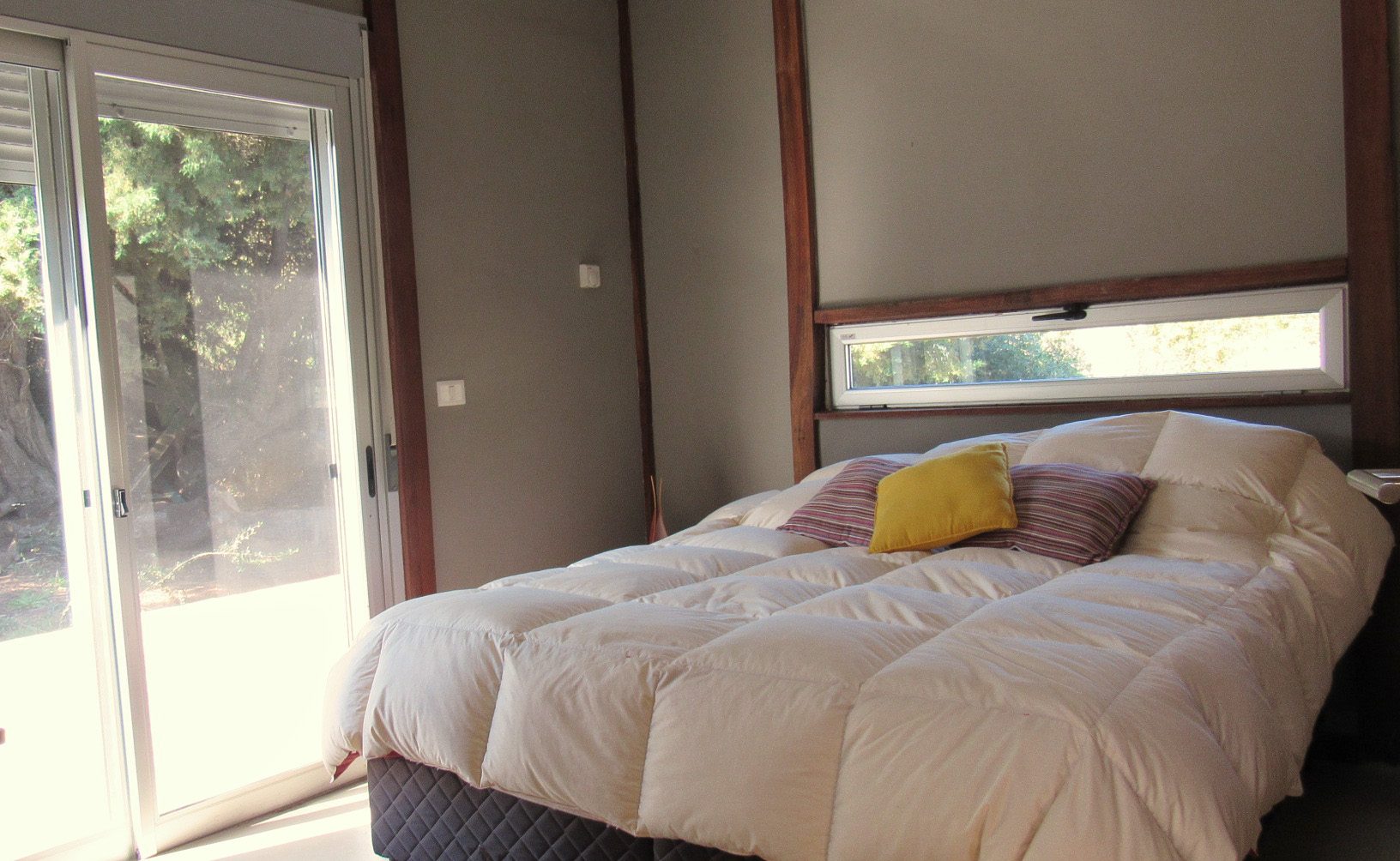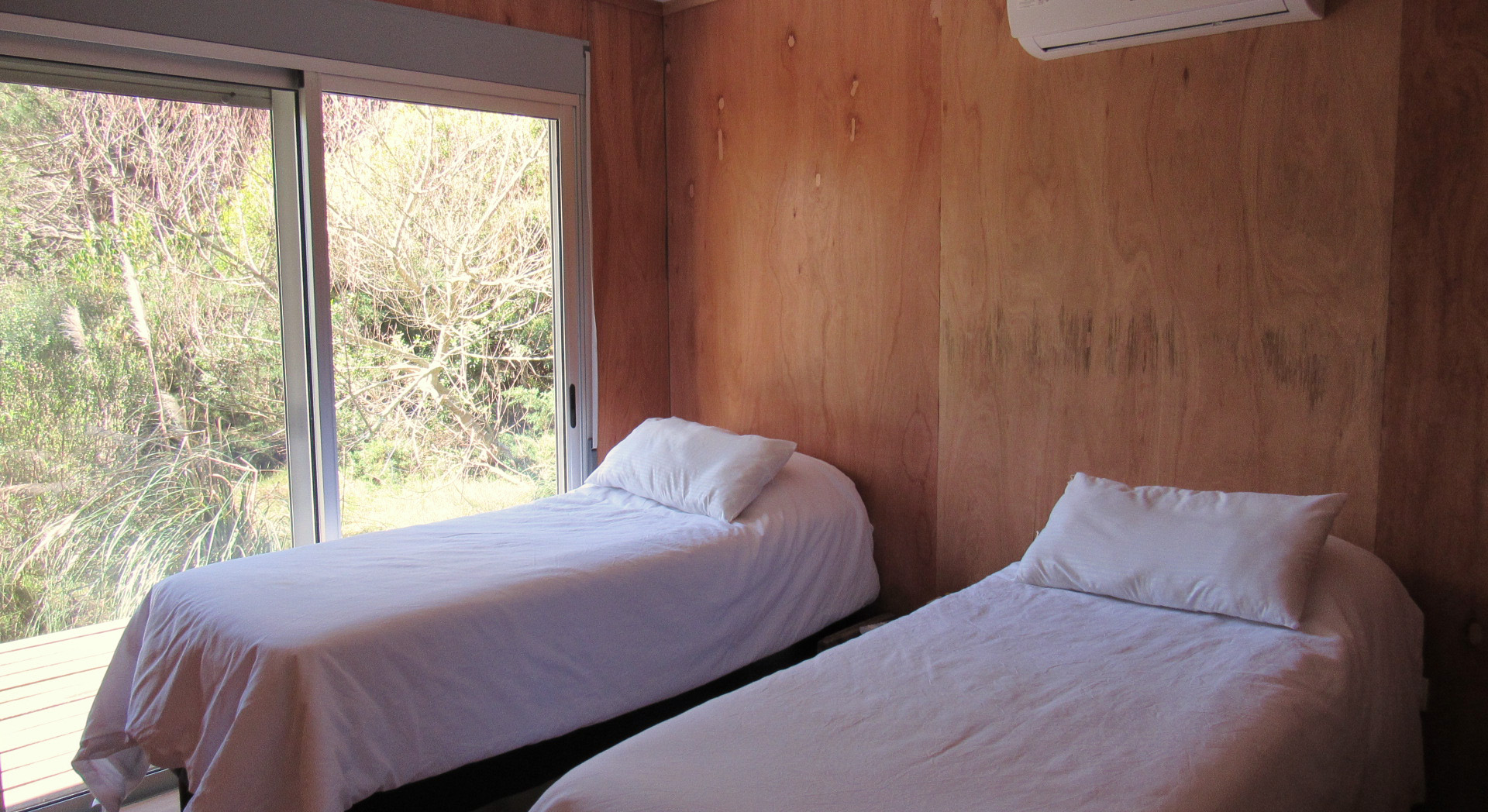 Construida con materiales livianos combinados con la calidez de la madera, ofrece dos módulos diferenciados y conectados entre sí, con capacidad para hasta 10 huéspedes. Como acondicionamiento térmico cuenta con AC en cada habitacion.