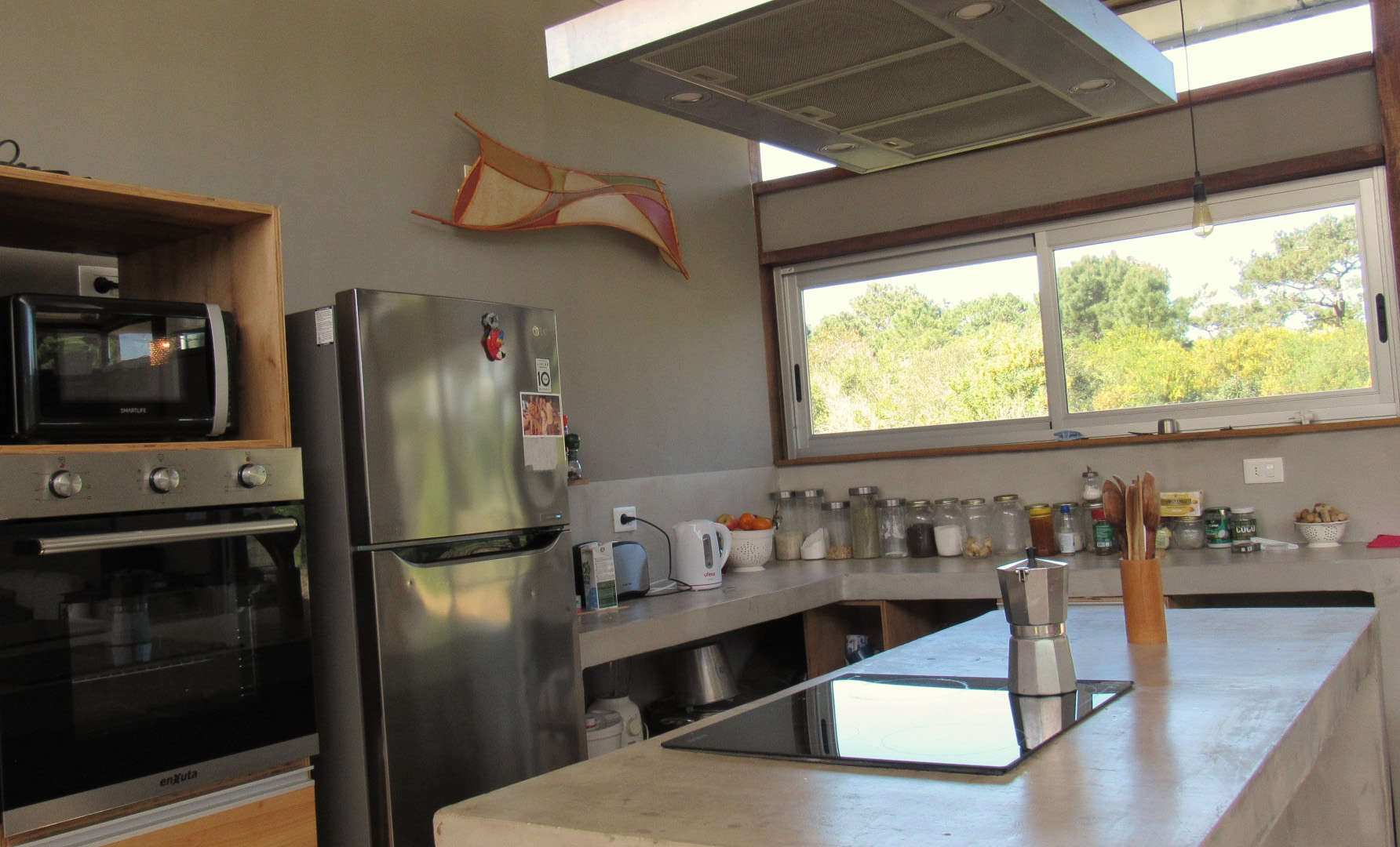 En el módulo principal se ubica el living con sillones que rodean una original estufa a leña. Integrado a éste, el comedor y la cocina, moderna y súper equipada, con una isla-barra en el centro. La transparencia del ambiente logra intergrar el interior al exterior creando una amalgama perfecta. El módulo se completa con el dormitorio principal, con cama doble y baño en suite, y un baño social y despensa.