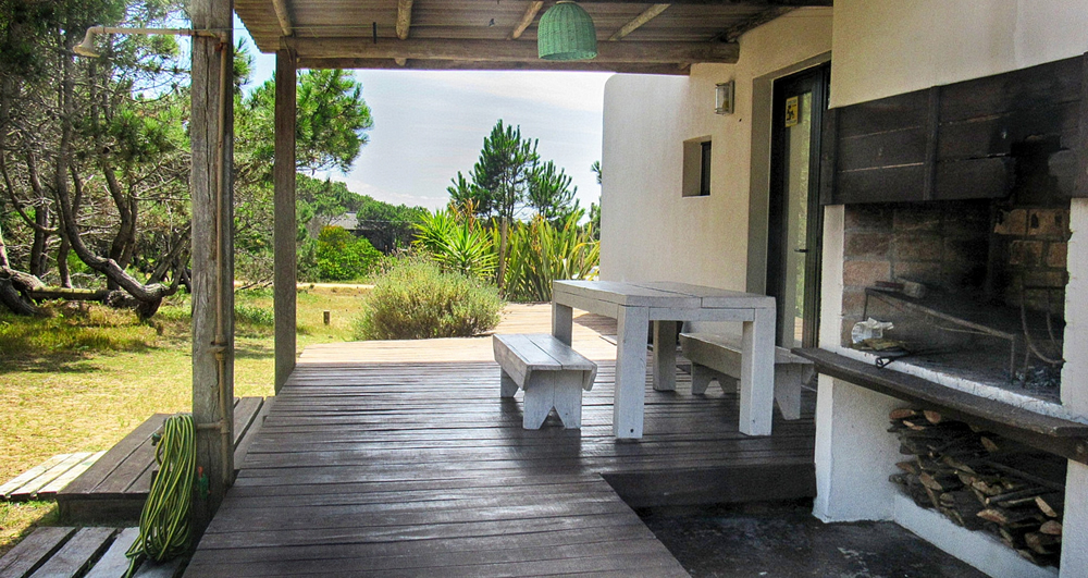 Los decks exteriores se conectan con el living interior a través de puertas ventanas corredizas. Ambos con pérgola semicubierta, permiten habitarse aún en días de lluvia. El deck Este mira al Océano, mientras que el Oeste lo hace al bosque, y cuenta con parrillero y mesa con banquetas.