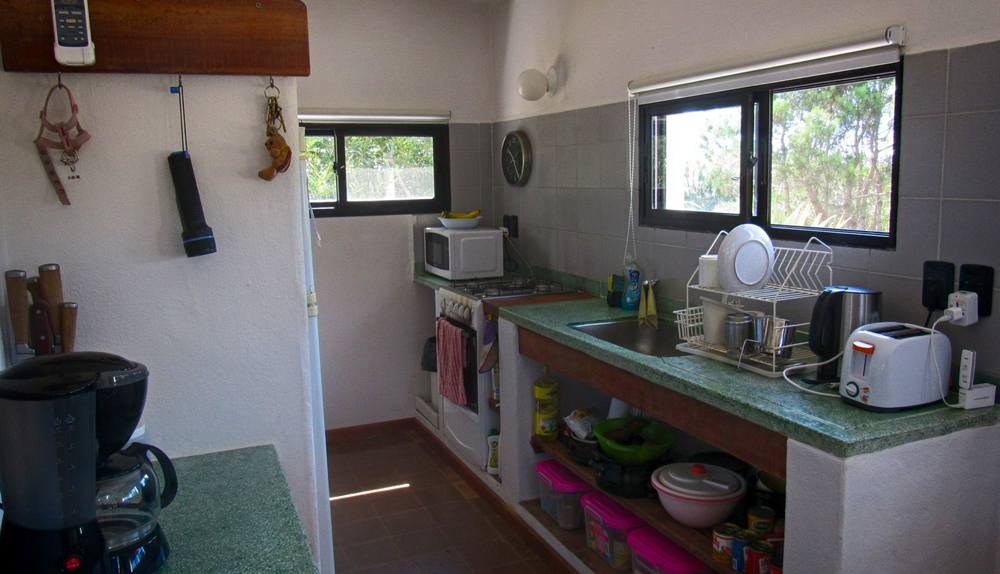 La cocina está bien equipada, con heladera con freezer, horno, microondas, cafetera, tostadora, entre otros.